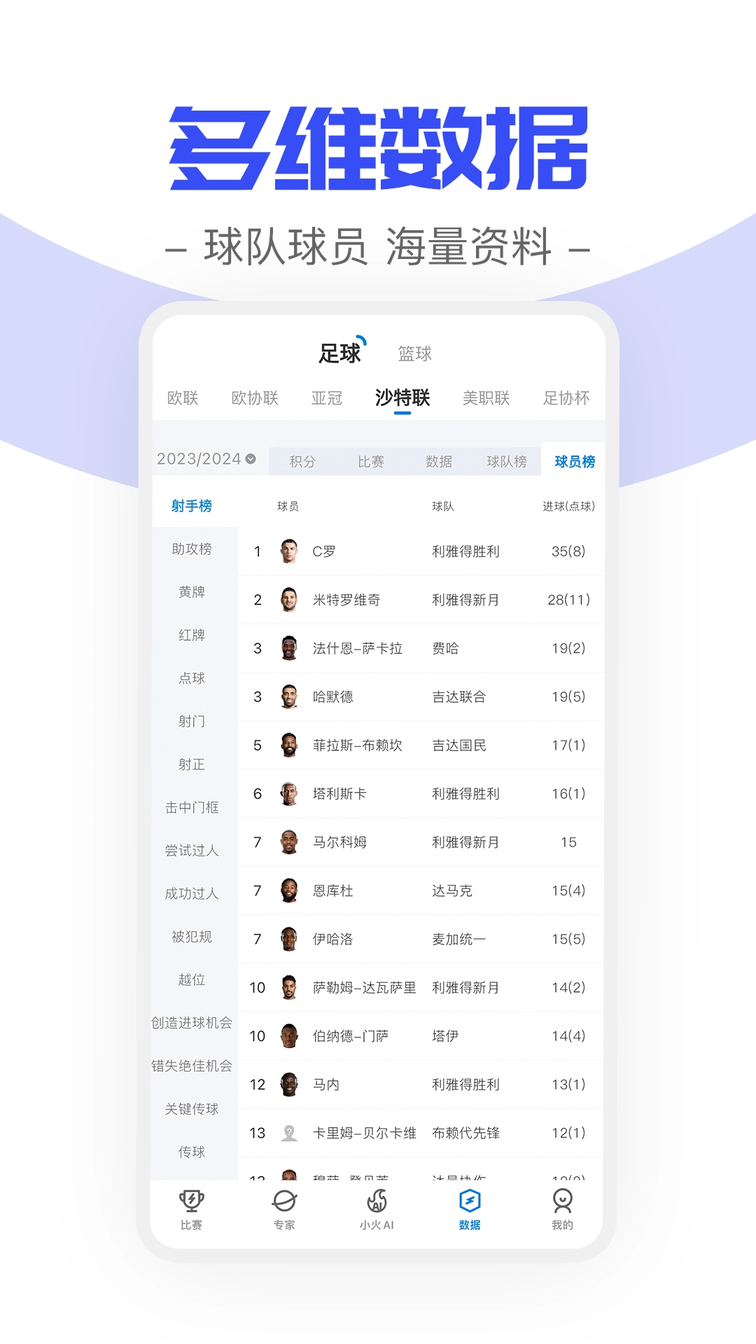 【资料详实】无论往昔、当下还是未来,无论是赛事、球队亦或是球员,海量的数据资料库皆为您敞开,随时可查且无期限限制!