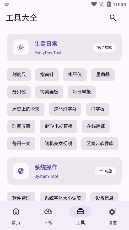 乱七八糟工具箱 1.0 是一款手机工具箱大全 app,为用户提供众多功能服务。它囊括各类工具资源,并已为用户分门别类整理好。用户能在乱七八糟工具箱 1.0 的各个分类里轻松找到所需工具资源,无需下载,即点即用。此外,软件还提供丰富功能,助力用户轻松搜索海量资源,一键就能完成资源下载。