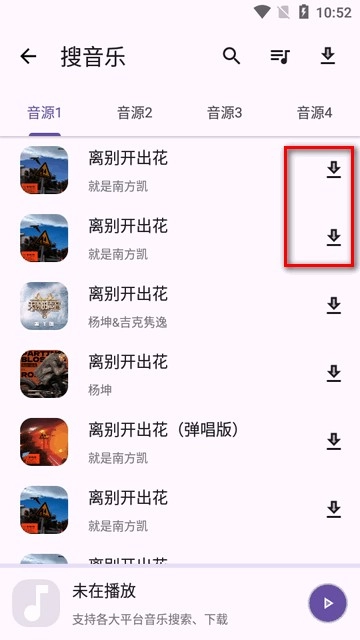 5、搜索出来的结果点下载然后选择音质。