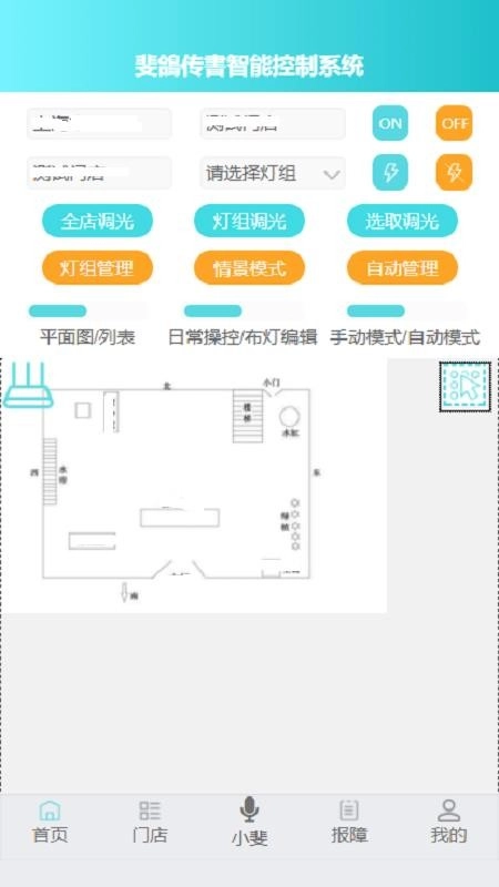 2、在首页,就能看到诸多灯组设备,同时可详情阅览平面图信息;