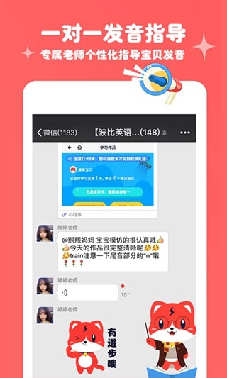 2、一对一发音辅导:由专属老师为宝贝提供个性化的发音指导。