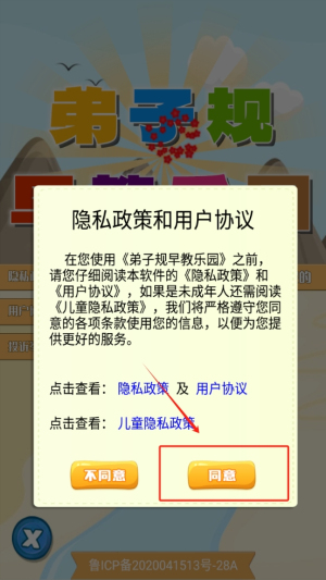 1. 第一步,点击“同意确认协议”,接着便能顺利进入应用界面,为开启国学启蒙学习之旅做好准备。