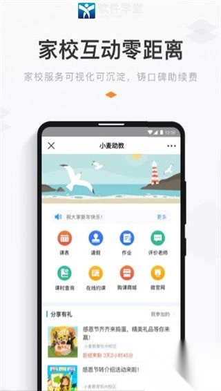 家校互动1、在线发各类家校通知,学员实时接收家校信息。2、为学员建立专属成长档案,一键分享朋友圈。3、课后评价、线上作业、师生互动等实时互动。4、打造良好口碑,拉近家长与培训学校的距离。小编点评