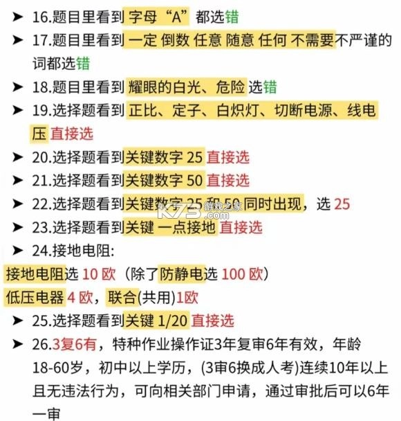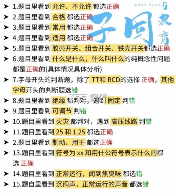 10. 若题目中出现火灾相关内容,一律判定为正确;若遇到高压线路相关内容,则判定为错误。 11. 当题目里出现“25”和“1.25”时,都选择正确选项。