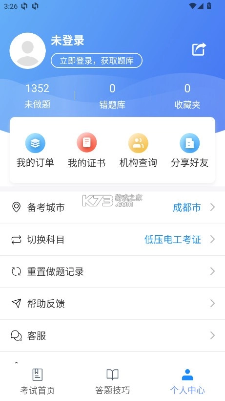 提供多种做题模式,涵盖模拟考场、历年真题练习、每日一练、快速练习、考点练习以及考试押题等,通过丰富多元的练习形式助力用户学习。
