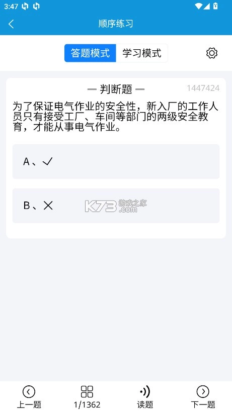 《准电工考试app》,这是一款专门为打算参加电工证考试的用户量身打造的学习软件。在这款软件中,用户能够浏览到各类经典的考试题目,助力其更高效地备考。不仅如此,软件还具备模拟真实考试环境与考题的功能,而且归纳分析用户的错题极为便捷。感兴趣的朋友们,赶快下载体验一下吧!
