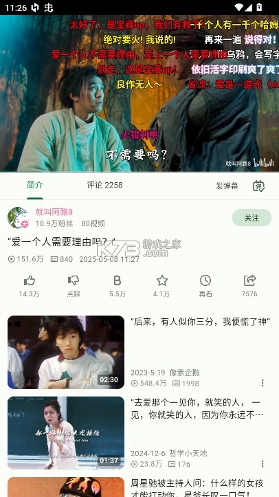 一款轻量级的优质视频播放软件,涵盖哔哩哔哩的全部视频内容。此软件几乎具备B站所有核心内容,分区清晰明了,包含视频、直播、番剧、影视等多样输出内容。重点是,该软件不存在任何广告弹窗,是纯粹输出优质内容的视频客户端,并且全部免费观看。