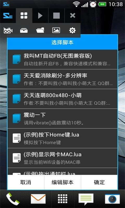 用户打开应用后就可以点击写好的示例脚本(这些都是自带的)