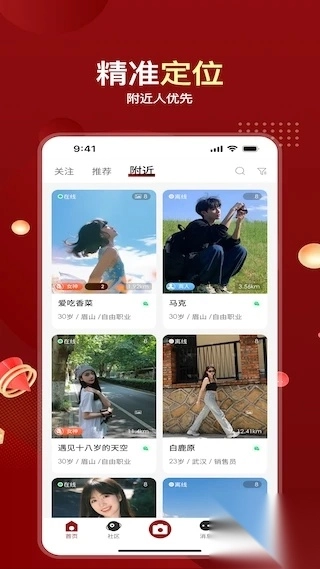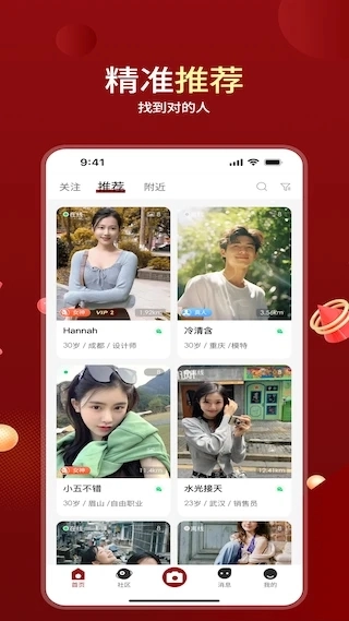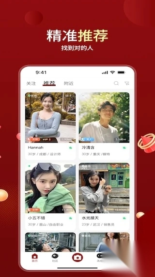 1、首页为你推荐了众多契合你要求的朋友,方便你们随时互动。