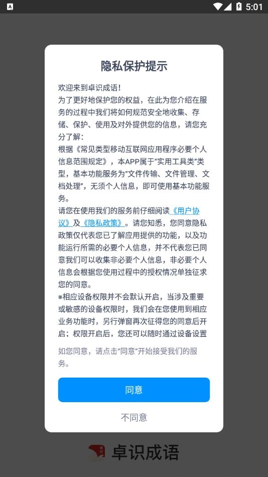 1、下载安装软件后打开,点击同意隐私保护提示。