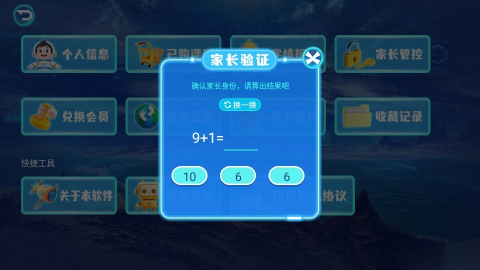 5. 接下来需要确认家长身份,输入正确的计算结果即可进入。