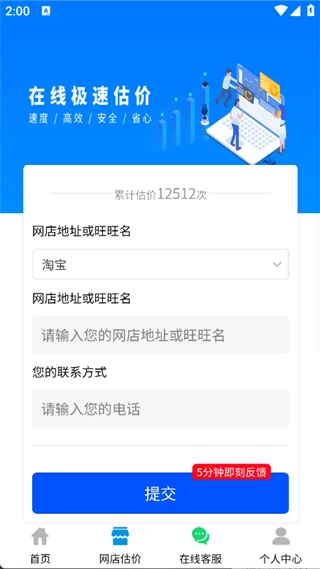 3. 点击页面底部的“网店估价”,填入所需信息,届时将有专业人员为您进行估价。