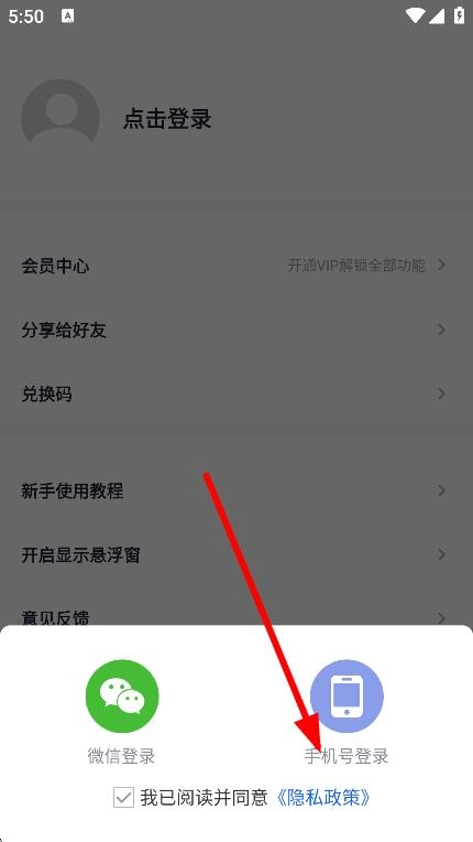 2. 在登录方式选择的弹窗里,挑选手机号登录选项,进而进入手机号登录页面。
