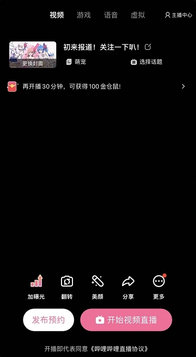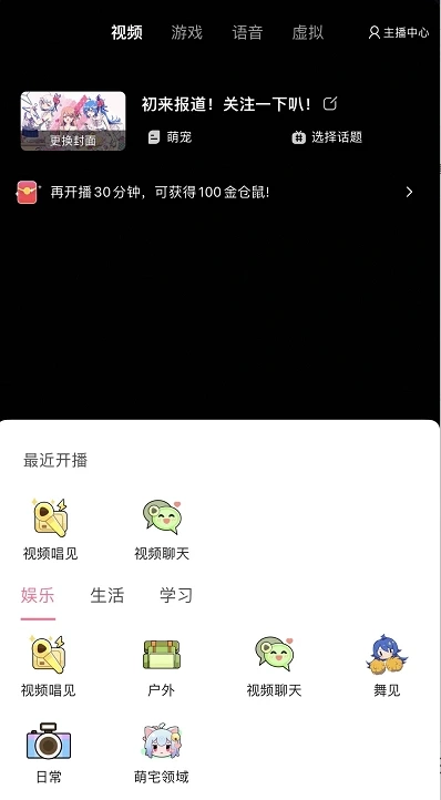 通常情况下,视频开播时主播会露脸,这种开播形式适用于视频唱见、视频聊天等分区。