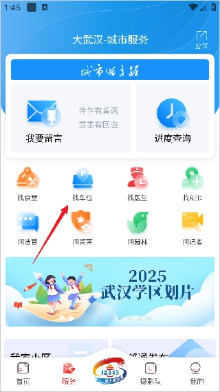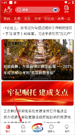 1. 开启大武汉App,轻点下方导航栏里的“服务”。