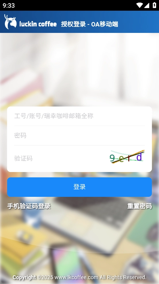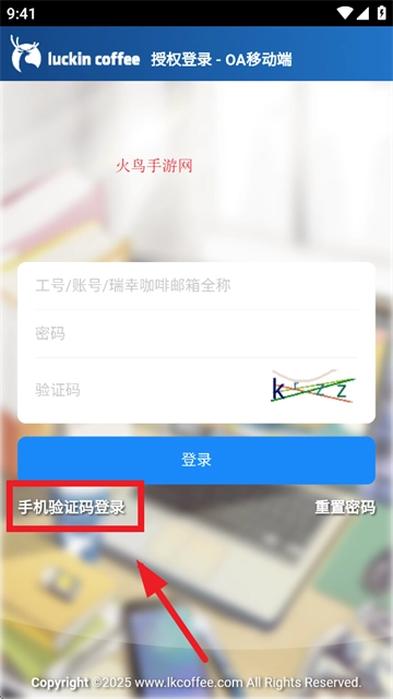 首先安装LK OA,安装完成后打开该应用。待进入登录界面,点击手机验证码登录选项。