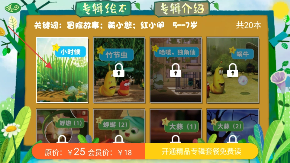 1. 在中文绘本的页面上,挑选你想阅读的绘本专辑,例如爆笑虫子。