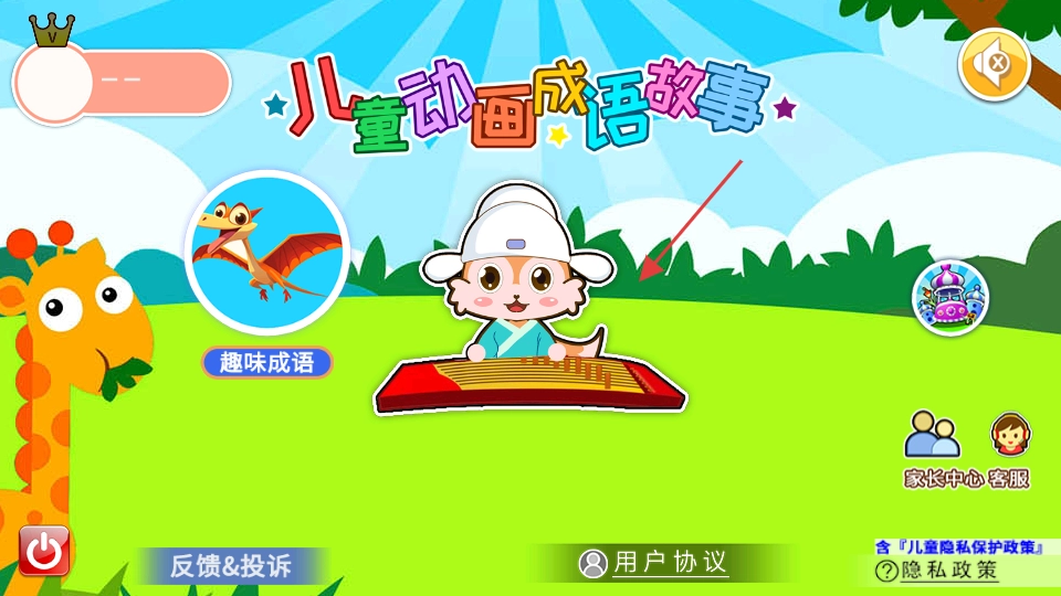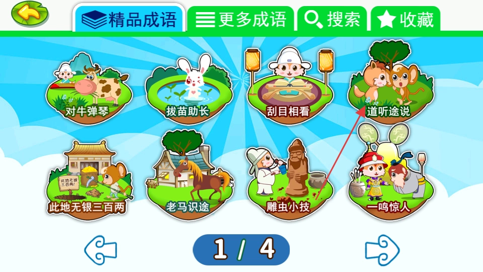 1. 进入儿童动画成语故事板块,点击正中间的小人,即可进入成语页面。