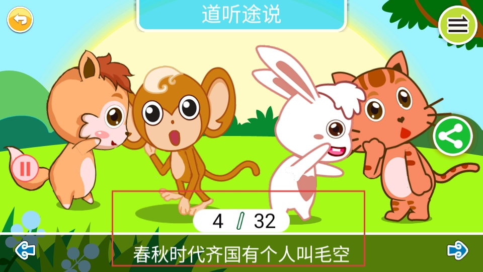 3、当你进入成语故事播放页面后,就能观看到像道听途说这类的成语故事动画。