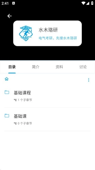 3、点击学习课程内容,这里有学习目录、简介、资料以及讨论区可供查看,方便进行选择。