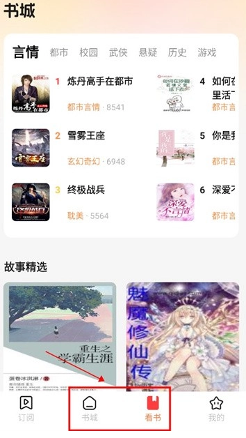 1、在【书城】专题或者【看书】专题中,寻找到自己感兴趣的小说,然后点击进入。