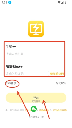 2、可直接输入手机号进行验证登录,也可点击下方的密码登录选项。