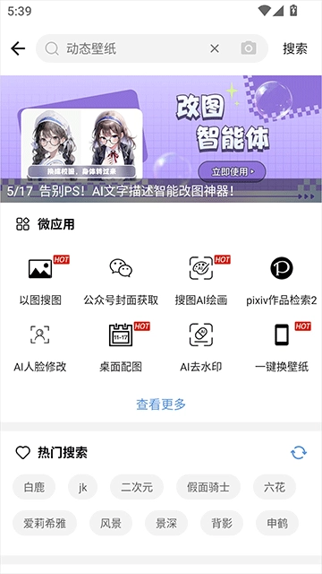 搜图神器的功能相当强大,不仅能够实现图片搜索,还支持用户自行制作锁屏壁纸。不仅如此,用户还能借助其中的AI工具对图片进行二次处理,像放大图片、去除水印、剪辑图片等操作都不在话下。只要用户有相关需求,搜图神器基本都能予以满足。