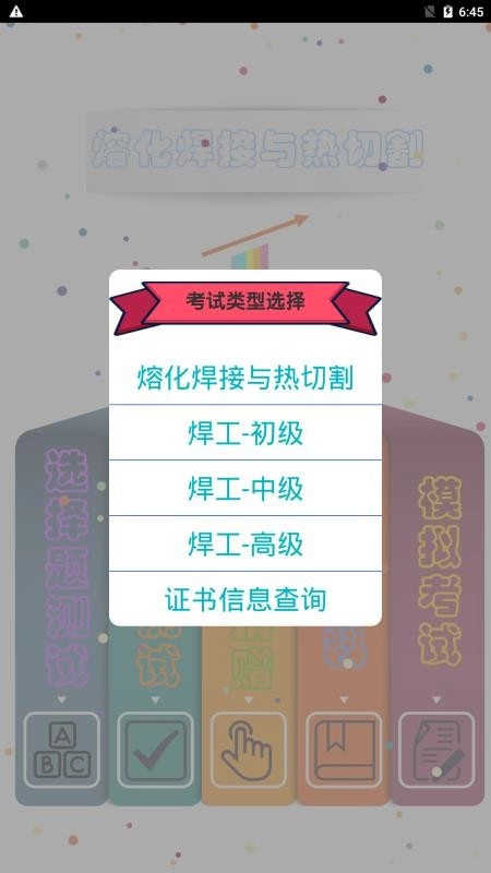 熔化焊接与热切割能助力用户考取特定作业的上岗证书。在这里,用户可选择多种考试类型,还能利用自带的考试题库进行刷题训练,实现轻松高效备考。通过有效开展真题训练,更好地进行模拟考试,从而提升专业技能,进而考取专业证书。