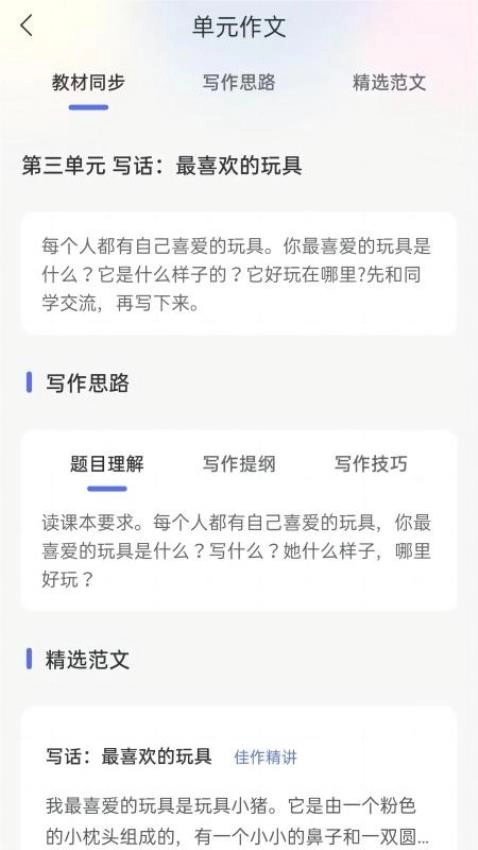 1在该软件里,用户能够浏览各类作文题目与素材资源,还能查看其他用户的优秀习作,彼此学习、相互借鉴。