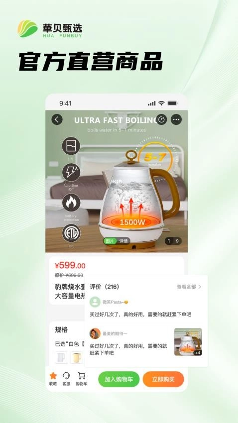 4. 可选择把商品添加到购物车,也能直接进行购买。