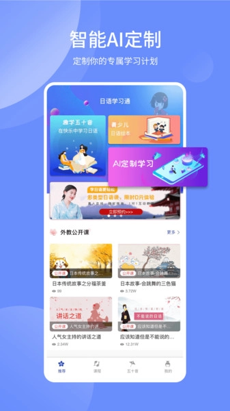 1. 借助AI打造专属学习计划:日语学习通依据用户当下的学习状况以及实际需求,为每位用户量身定制个性化的日语学习方案,助力用户实现更高效的日语学习。