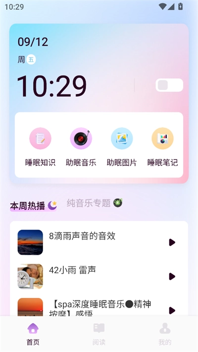 疗愈音乐库部分:涵盖冥想音乐、白噪音、纯音乐等多种分类,从营造宁静氛围到模拟自然音效(例如亭子边的雨声 ),通过声音为你打造沉浸式的舒缓空间;