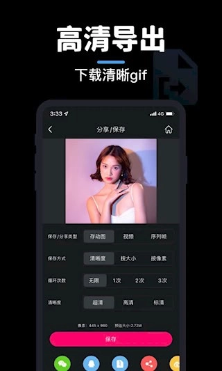5、 输出适配28个社交平台的规格要求,支持以GIF、MP4、WEBM等多种格式进行高清导出。