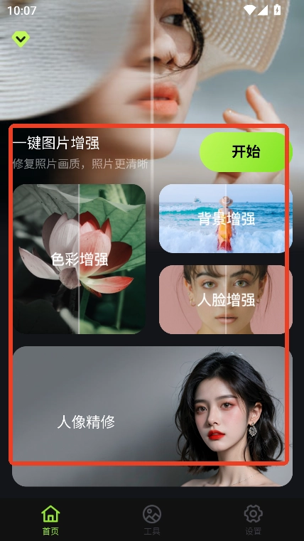 2. 进入主页后,能够查看软件所涵盖的全部修图功能。