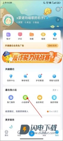 2. 进入“我的”页面,寻找到“小说榜单”,点击即可进入。