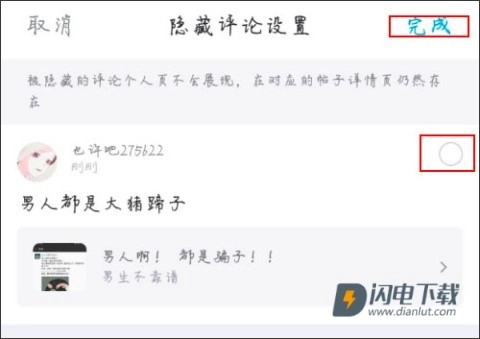 4、接着挑选你打算隐藏的评论,选中它,随后点击上方的“完成”就可以了。