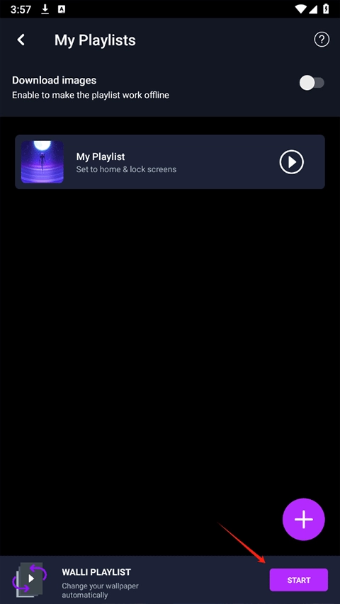 3、轻点空白处的加号,添加你心仪的壁纸,添加完毕后点击play。