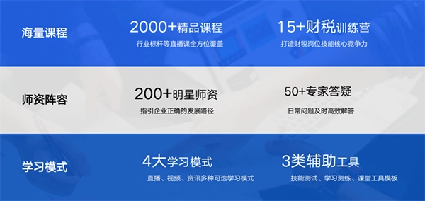 1. 课程资源:拥有1300余门结构化课程,依据岗位、行业、技能进行分层式设计,覆盖财务总监、税务经理等关键岗位,以及IPO辅导、数字化转型等前沿范畴。