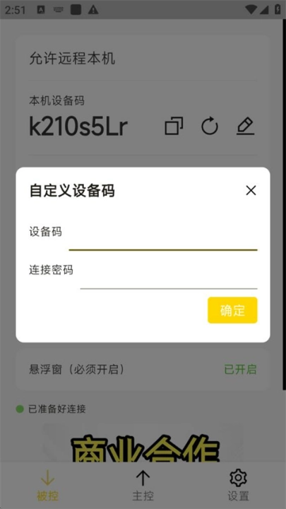 3、于主控端输入被控端的设备码与连接密码。
