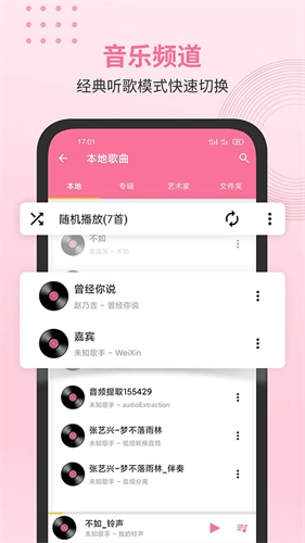 3、运用新颖的卡片呈现形式,让用户能便捷地快速浏览并挑选感兴趣的音乐。