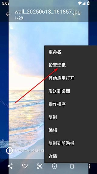 3、在弹出的列表中选择设置壁纸,操作完成。