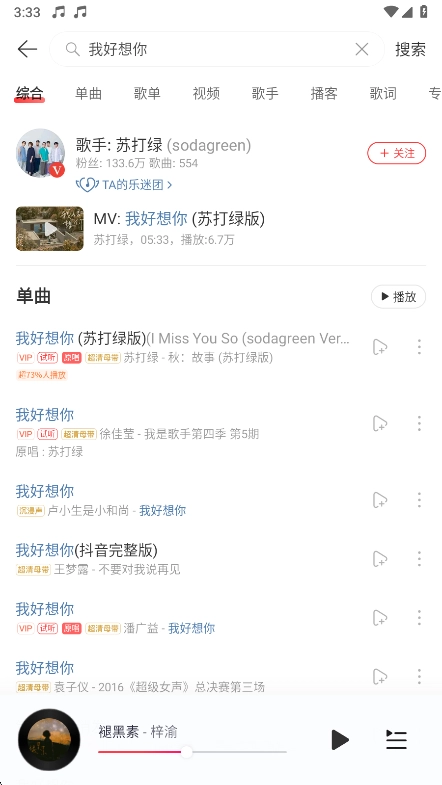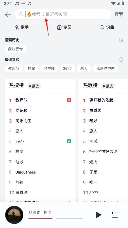 2. 接着输入你想听的歌曲名称,随即开始搜索。