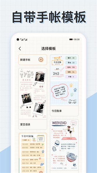 1这是一款风格既可爱有趣又极为实用的手账软件,能给大家供应诸多精美的模板。