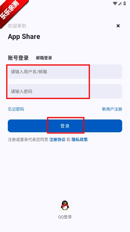完成注册后,返回登录页面,输入刚刚注册的用户名与密码。