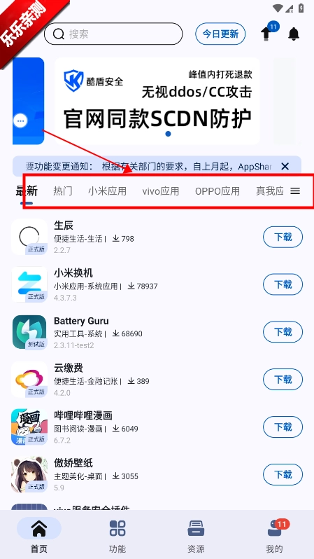 首页设有最新、热门以及小米、vivo、oppo、真我等品牌专栏。要是您想获取手机品牌自带软件,直接点击相应品牌专栏即可,例如小米手机用户点击小米专栏。
