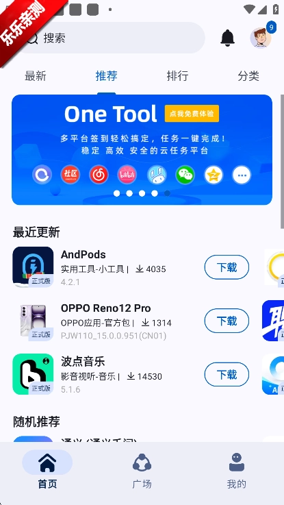 1、分享本站最新版的App客户端,安装完成后直接打开。平台提供了海量应用数据供大家下载,涵盖的类别有:影音视听、图书阅读、手表应用、实用工具等,几乎涵盖市面上大部分类别。
