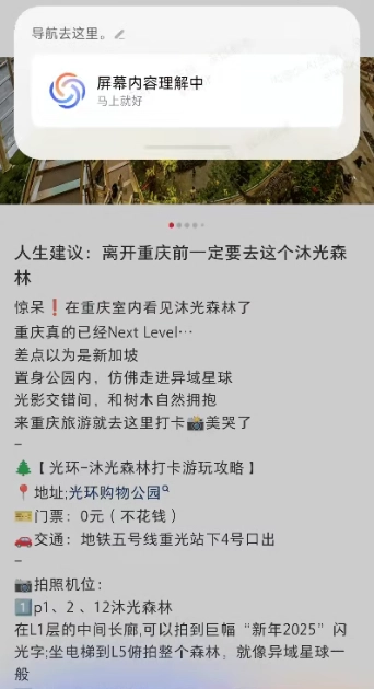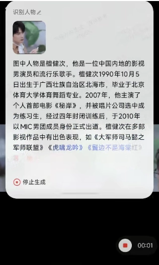 在完成唤醒操作的同时,系统会即刻对当前屏幕上的文字进行识别。在屏幕右下角,设有专门用于文字识别的符号。值得一提的是,即使是人物的侧脸,也能够被精准识别出来。