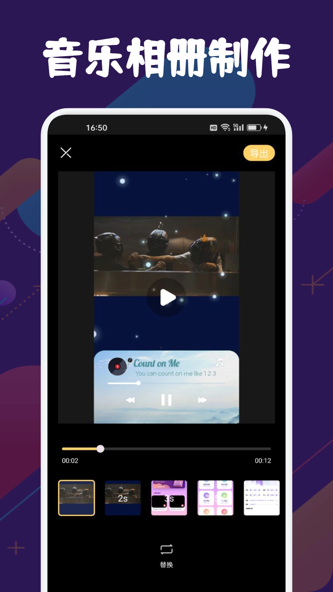 2、另外,还可以制作音乐相册,只需将手机里自己喜爱的照片导入,就能一键生成。
