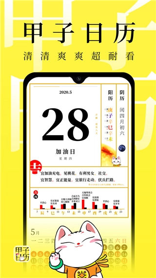 只需开启甲子日历中的日历查询功能,便可查看当天的宜忌与运势信息。这些内容主要依据中国传统黄历以及命理学,为你当日的行动提供参考。
