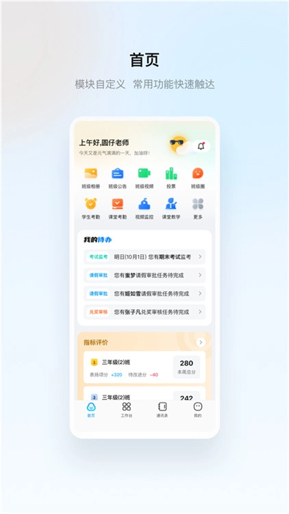 1. 把课表查看、请假处理、值日安排等常用功能进行整合,以此减轻教师日常管理的负担。